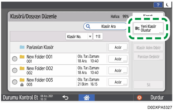 [Yeni Klasör Oluştur] öğesine basın.