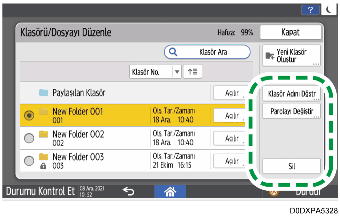 görüntülenir.Klasör Adını Dğştr: Klasörün adını değiştirir.