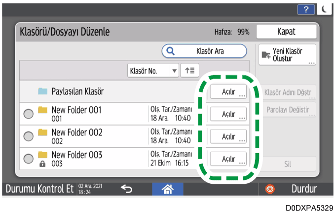Klasör Numarası: Kullanılmayan bir numara otomatik olarak atanır. Klasörler, klasör listesinde azalan veya artan sırayla sıralanabilir.