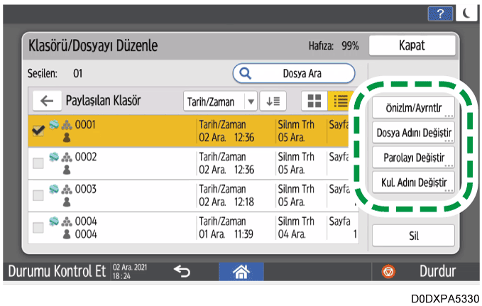 Doküman sunucusu ekranında [Klasörü/Dosyayı Düzenle] öğesine basın.