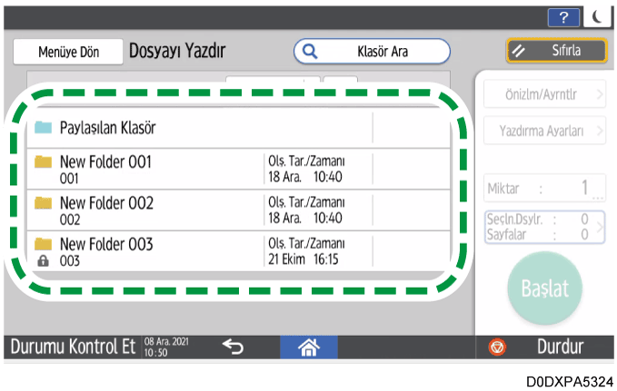 Klasör adı ya da numarası kullanarak bir klasör aramak için [Klasör Ara] öğesine basın.