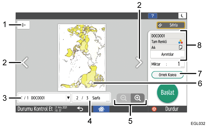 Seçilen belgede iki veya daha fazla sayfa varsa görüntülenir. Önceki sayfaya dönmek için