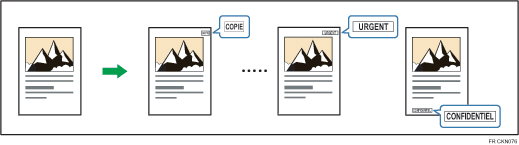 Les messages enregistrés à l'avance, comme « COPIE », sont tamponnés sur les copies.