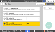 Naciśnij [Typ pliku] i wybierz jako jaki typ pliku zapisać skanowany dokument.