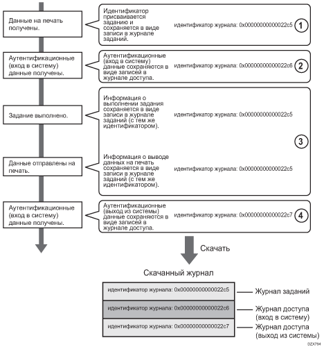 Если выбрано [Журналы безопасности], загружаемый файл включает журнал заданий и журнал доступа.