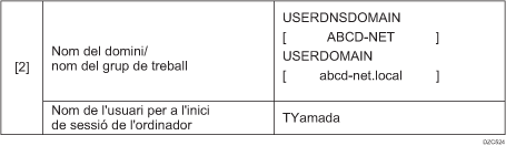 Comproveu el nom del domini, del grup de treball i de l'usuari que ha iniciat la sessió i anoteu la informació a [2] al full de comprovació.