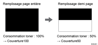 Afficher/Imprimer compteur | Vous pouvez afficher et imprimer le compteur pour chaque fonction. Le compteur de couverture qui est affiché comme élément dans les informations du compteur indique la quantité de toner réellement utilisée comme ratio de la zone imprimée, en supposant que la quantité utilisée lors du remplissage de la page complète est de 100 %. ![]() |