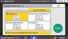 Orijinali okunur yönde ön yüzü yukarıya bakacak şekilde yerleştiriyorken, [Okunabilir Yön] tuşun üzerinde görüntüleniyorsa bu ayar gerekmez. Orijinalin yerleştirilmesi tamamlanmıştır.