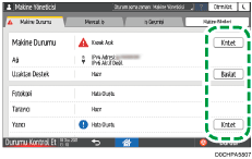 [Durumu Kontrol Et] ile durum doğrulama ekranını görüntüleyebilirsiniz. Ekranda makinenin ya da uygulamanın durumuyla ilgili ayrıntılara bakın.