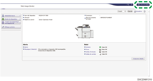 Inici de sessió a la màquina amb Web Image Monitor