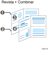 La máquina no puede plegar ni encuadernar en caballete las páginas impresas. Después de imprimir los originales mediante la función de revista, pliegue y encuaderne en caballete a mano las páginas impresas.