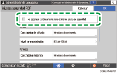 Pulse [Ajustes seguridad PDF] y configure los ajustes de seguridad.