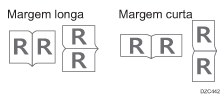 Selecione a caixa [Frente e verso] e, em seguida, selecione [Disposição] para especificar o lado de encadernação e tipo de abertura do papel.