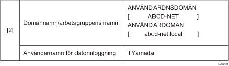 Kontrollera domännamnet, arbetsgruppens namn och användarnamnet, och skriv ner denna information vid [2] på kontrollarket.