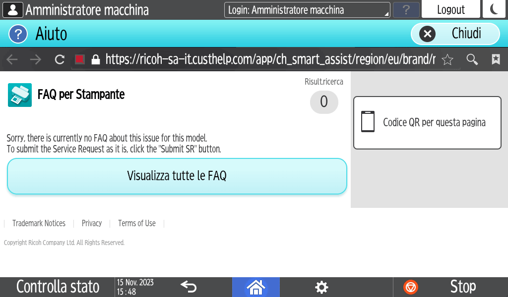 Per visualizzare la schermata [Guida] su un dispositivo smart, effettuare la scansione del codice QR visualizzato nella schermata con il dispositivo smart.Quando la macchina è connessa a Internet