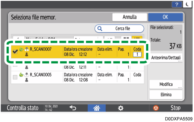 Selezionare il documento che si desidera controllare e premere [Anteprima/Dettagli].