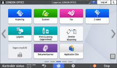 På startskærmen skal du trykke på [Kopi], [Fax] eller [Scanner].