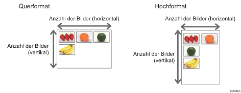 Die Anzahl von Thumbnail-Bildern, die auf einer Seite gedruckt werden, hängt vom Papierformat ab.