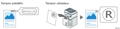 Vous pouvez imprimer un message ou une image prédéfini(e) comme tampon pour identifier les documents à gérer ou à distribuer.