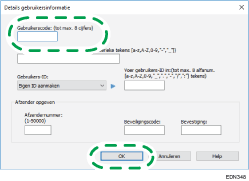 Wanneer de faxfunctie van het apparaat beperkt wordt door gebruikerscodeverificatie moet u de gebruikerscode van de afzender (8-cijferig nummer) invoeren om faxtaken op het apparaat te verifiëren.