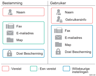 Welke items moeten worden geregistreerd, is verschillend voor Bestemming en Gebruiker.