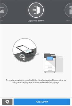 Uruchom aplikację RICOH Smart Device Connector w urządzeniu mobilnym, a następnie przewiń ekran w lewo lub w prawo, aby wyświetlić ekran logowania.