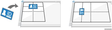 ) поместите удостоверение личности в альбомной ориентации в центр области сканирования, размер которой вполовину меньше бумаги для копирования.Пример: Чтобы скопировать на бумагу формата A5