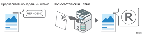Пользовательский штамп: выберите пользовательский штамп. Пользовательские штампы необходимо зарегистрировать заранее. Подробную информацию о пользовательских штампах см. в Регистрация пользовательских штампов.