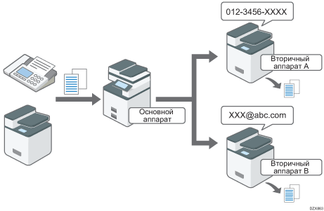 Зарегистрируйте отправителя факса в качестве специального отправителя и назначьте вспомогательный аппарат для переадресации факсов, принимаемых от специального отправителя.