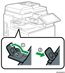 Выводимая бумага сминается или падает (при использовании бумаги формата A4 или 81/2 × 11). | Слишком сильное трение между листами бумаги. | Вытяните направляющую внутреннего лотка в положение 1, а затем верните ее в положение 2, как показано на рисунке ниже. Только для IM C300 series/IM C400F ![]() |