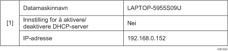 Kontroller datamaskinnavnet, aktiver/deaktiver status på DHCP-serveren og IP-adresse, og skriv ned informasjonen i [1] på kontrollarket.