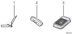 2 | Telefonrør | Bruges som modtager, når en faxenhed er installeret, og giver dig mulighed for at bruge maskinen som telefon. Gør det muligt at bruge funktionerne Opkald med rør på og Manuelt opkald. "Bekræft en ringetone eller en persons stemme på destinationen inden afsendelse eller modtagelse af en fax", brugervejledning (komplet version) på engelsk. |
