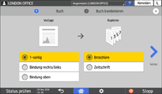 Kopieren und Binden bei Auswahl der Option Broschürenkopie
