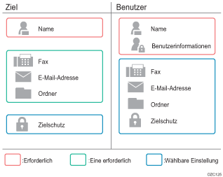 Sie können eingetragene Zieldaten zu Anwendern oder Gruppen hinzufügen. Sie können Gruppen in einer hierarchischen Struktur anlegen.