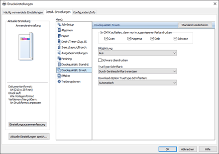 Konfigurieren Sie die Einstellung im Menü [Druckqualität: Erweit.] der Registerkarte [Detaill. Einstellungen].