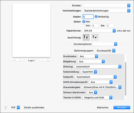 Festlegen des Farbtoners zum Drucken (OS X/macOS)