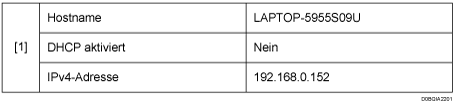 Überprüfen Sie den Computernamen, den Aktivierungs-/Deaktivierungsstatus des DHCP-Servers und die IP-Adresse und notieren Sie die Informationen unter [1] auf dem Prüfblatt.