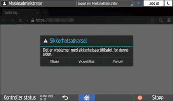 Klikk på [Aktiv] i «Sjekk av rotsertifikat» for å importere nettstedssertifikatet.