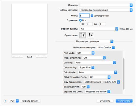 Выбор цветного тонера для печати (для OS X/macOS)