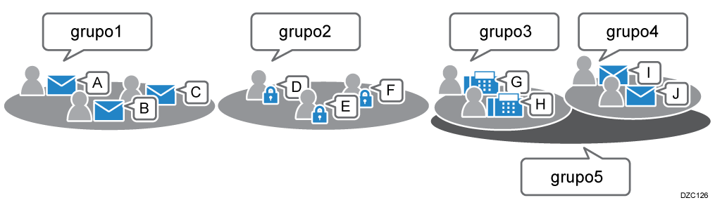 Puede añadir destinos registrados o usuarios a un grupo. Puede crear grupos con una estructura jerárquica.