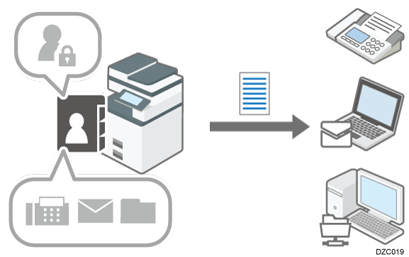 Con la función de seguridad ampliada habilitada, la máquina previene que los usuarios generales registren direcciones de destino en la Libreta de direcciones.
