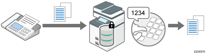 Todos los documentos recibidos por Recepción de bloqueo de memoria se imprimen. Tras la impresión, los documentos se borran de la memoria.