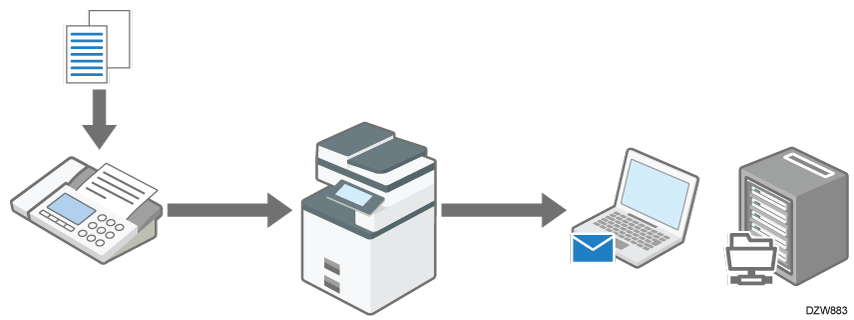 Además de imprimir los faxes recibidos desde la máquina, también puede transferirlos a una dirección de correo electrónico o a una carpeta compartida de su ordenador (Reenvío). Esta función resulta útil si desea comprobar el contenido de los faxes recibidos a través del correo electrónico cuando no está en la oficina o para gestionar los faxes recibidos en la carpeta de su ordenador.