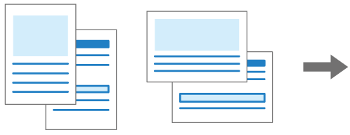 ) seguidas, la máquina combina e imprime de dos en dos páginas en una sola hoja de papel, como se muestra a continuación, cuando no hay papel del mismo tamaño y con la misma orientación cargado en la bandeja.