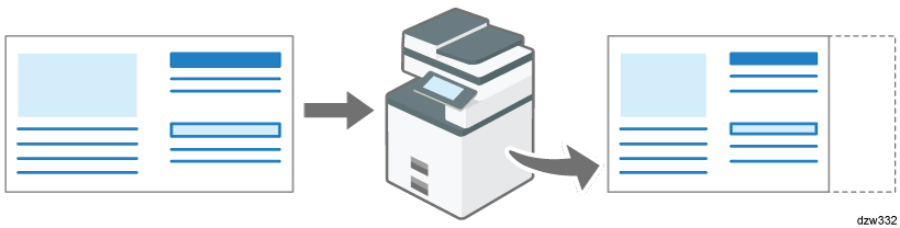 Cuando se reciba un documento más ancho que el papel cargado en cualquiera de las bandejas, la máquina divide la página recibida y la imprime en varias hojas de papel, o la reduce e imprime de forma que se ajuste a una única hoja.