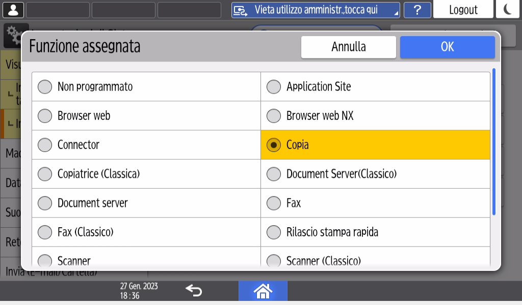 Selezionare una funzione dall'elenco mostrato e premere due volte [OK].