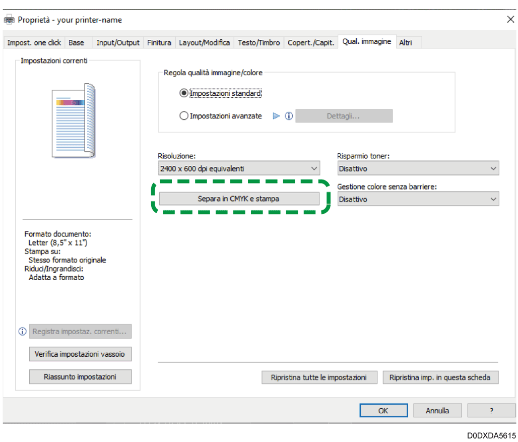 Nella scheda [Qual. immagine], fare clic su [Separa in CMYK e stampa] e selezionare i colori da usare.