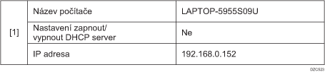 Zkontrolujte název počítače, povolte / zakažte stav serveru DHCP a IP adresu a zapište informace do pol. [1] na kontrolním listu.