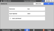 Um den Dateinamen festzulegen, drücken Sie auf [Dateiname] und geben Sie den Dateinamen ein.