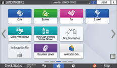 On the Home screen, press [Copy], [Fax], or [Scanner].